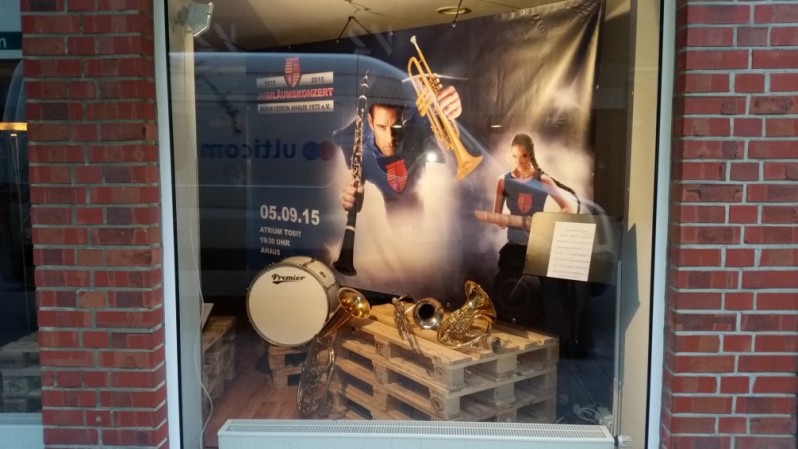 das kann sich sehen lassen. Der Musikverein Ahaus 1975 e.V. hat bis zum Jubiläumskonzert ein „Büro“ in der Innenstadt von Ahaus angemietet. Hier wird der Verein und die 40 jährige Geschichte vorgestellt. Eintrittskarten für das Konzert am 05.09.2015 können bei allen Mitgliedern, der Ahaus Marketing & Touristik und auch hier erworben werden.