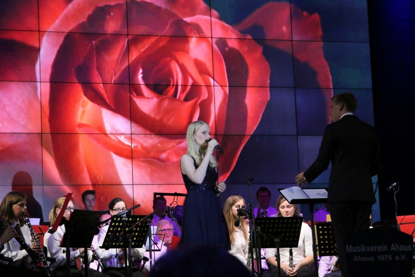 Das war wohl eines der besten und schönsten Konzerte, die der Musikverein Ahaus 1975 e.V. je geben durfte. Wir könnten -wie in einem der letzten Berichte schmunzelnd angekündigt- Stühle dazu stellen, aber wer hätte gedacht, das es an dem Abend wirklich dazu kommen würde. Über 480! Gäste haben das Konzert besucht und wir mussten (das haben wir natürlich sehr gerne gemacht) tatsächlich Stühle dazu stellen. Natürlich hofft jeder Musikverein an seinem Konzertabend viele Gäste begrüßen zu dürfen, aber dass das Tobit-Atrium derart „ausgebucht“ sein würde, damit hat wohl keine Musikerin und kein Musiker des Vereins gerechnet. Das war schon der erste überraschende „Hammer“. Dann das Ambiente im Tobit-Atrium mit der Großledwand, rechts und links unser Wappen, in der Mitte wechselnde Projektionen mit Themen passend zur Musik. Der zweite tolle „Hammer“. Sensationell das eigentliche Konzert. Mit einer guten Mischung und einem breiten Repertoire an Musikstücken. Nadine Büning gesanglich gekonnt mit „The Rose“ und „A night like this“ und Nicole Saalmann mit ihrer schönen hohen Stimme zu „Moment for Morricone“ (s. hierzu den Konzertbericht der Münsterland Zeitung vom 07.09.15) Na klar, der dritte „Hammer“!. Und in der Pause und bei der „After Show Party“ nur ehrlich gemeinte positive Kritiken….. das ist zwar auch ein „Hammer“, aber der größte „Hammer“…….. die von „Jung und Alt“ am Ende des Konzertes und zwei Zugaben „Standing Ovations“ mit viel Beifall und Jubel.