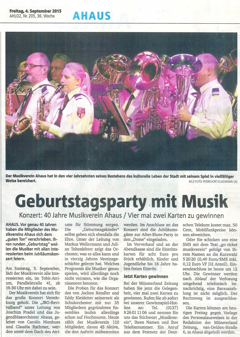 Das schrieb die Muensterlandzeitung am 04.09.2015 über die Ticket-Verlosung: