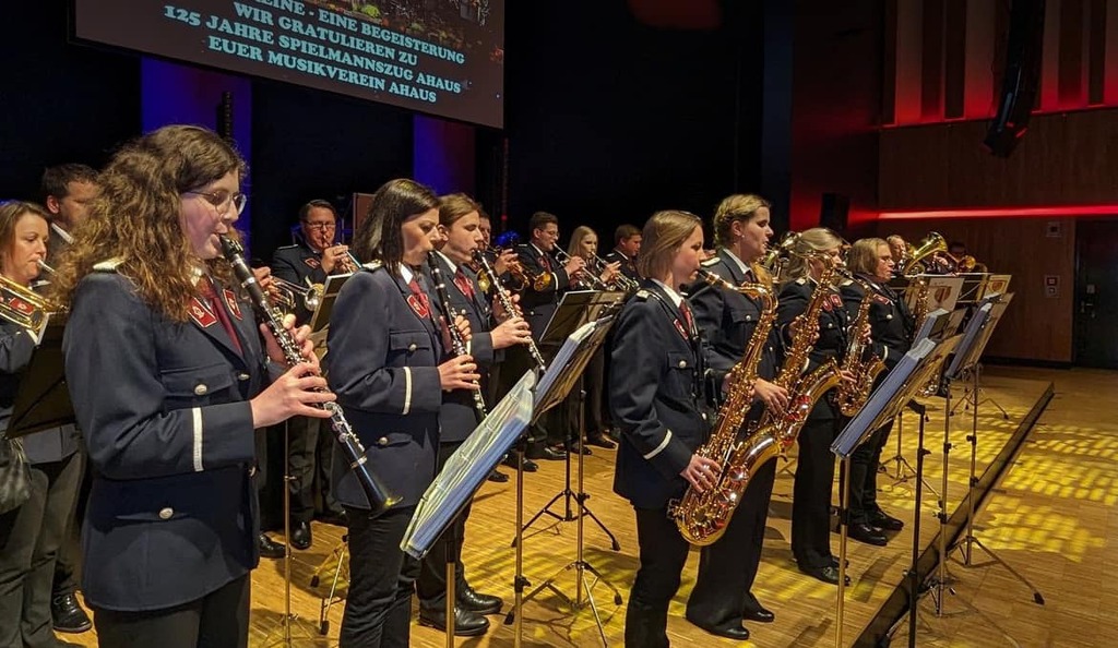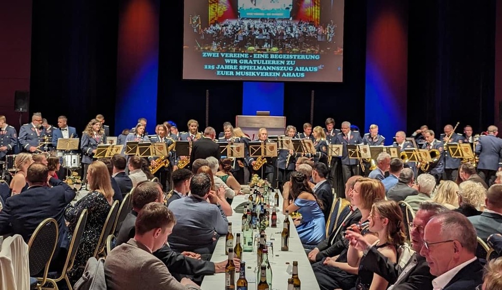 Der befreundete Spielmannszug Ahaus 1896 e.V. feierte am 27.04.2024 sein 125 jähriges bestehen und hatte hierzu auch den Musikverein Ahaus 1975 e.V. in das Kulturquadrat Ahaus eingeladen. Natürlich konnten wir es uns nicht nehmen lassen, ein „Ständchen“ mit Gesang und allem „Drum und Dran“ speziell für den Spielmannszug unter der Leitung von Markus Rupe zu geben.